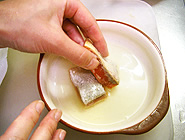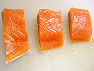 鮭は骨があれば切り落とし、2〜3等分に切る。 |