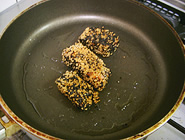 サラダ油をひいたフライパンで、中弱火で焼いたらできあがり。時間はだいたい10〜15分くらい。ゴマを焦がさないように、時々様子をチェックして。 |