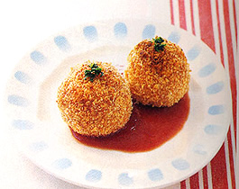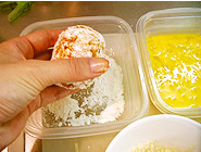 おにぎりをそれぞれ小麦粉、溶き卵の順にくぐらせ…