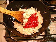 ごはん、ケチャップを加えてよくいため、塩・コショウで味を調える。
